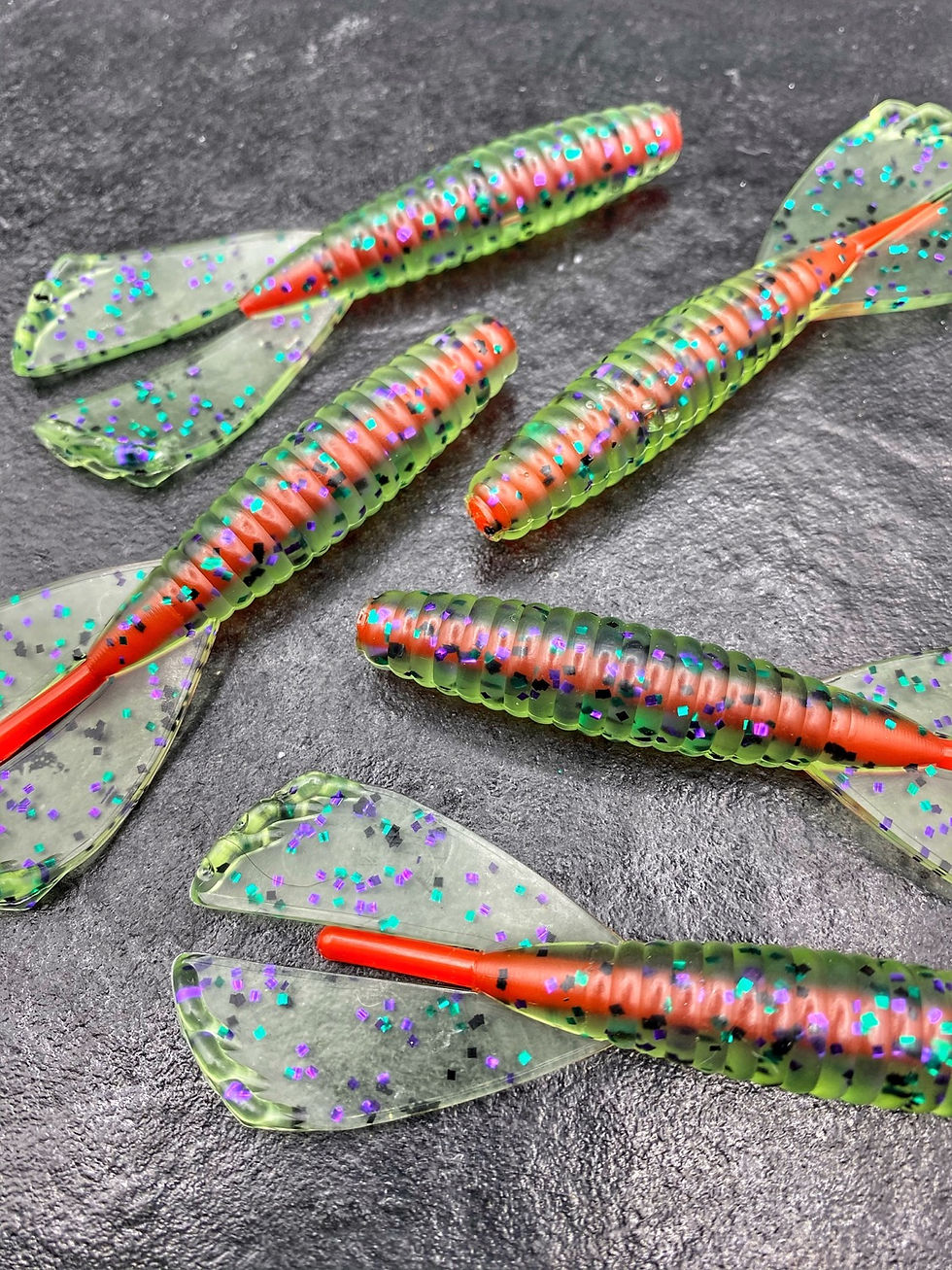 3.5” GRUBS - WATERMELON Red & Black Flake